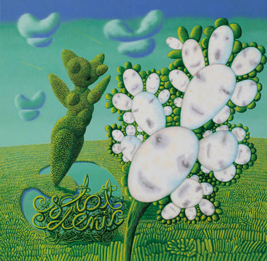 그의 캔버스엔 기하학적인 모습의 풀, 문자화된 나무와 구름, 드넓은 하늘이 주로 등장한다. 이는 인간의 손이 가꾼 정원을 시각화한 것으로, 자연이 주는 마지막 기회를 뜻한다. 인공적인 자연 파괴에서 벗어나 태초의 자연으로 돌아가자는 메시지를 담은 것.