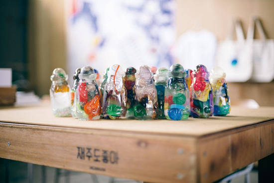 그는 비치코밍 작업으로 쓰레기를 넣은 ‘비치코밍 돌하르방’을 만들었다. 제주도의 흔한 돌이었던 현무암은 이제 값이 매겨지는 귀한 몸이 됐으며, 마땅히 보존돼야 할 자연 유산이기도 하다. 그는 제주 해안가에 널린 귀한 돌들 사이의 쓰레기를 수거해 그것을 주재료로 제주도의 수호신이자 상징적인 기념품인 돌하르방을 만들어 방문 관광객들과 물물교환을 했다. 외부에서 들어온 쓰레기를 관광객들이 다시 가져갈 수 있게 하려는 취지다.