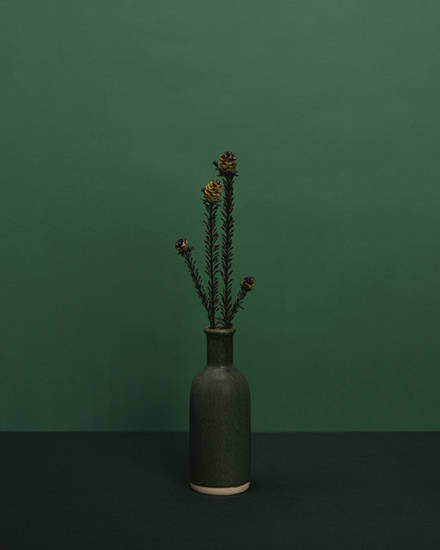 요즘 그는 정물 연작과 더불어 화병 연작을 번갈아 진행 중이다. 화병 하나에 꽃 한 송이를 꽂아 근접 촬영하는 이 과정은 꽃과 정물 연작의 절충안처럼 느껴진다. 하지만 기억을 담은 사물을 구하기 힘든 것만큼 우리나라에서 다양한 화병을 구하는 데 느낀 어려움도 드러냈다. 금방 시들어 버려지는 꽃을 집에 꽂아두는 문화가 그리 오래되지 않은 탓도 있다. 같은 사물을 다시 찍지 않겠다는 그의 신념 탓에 그는 화병을 구하기 위해 중국 등 다른 나라로 원정을 떠나기도 했다.