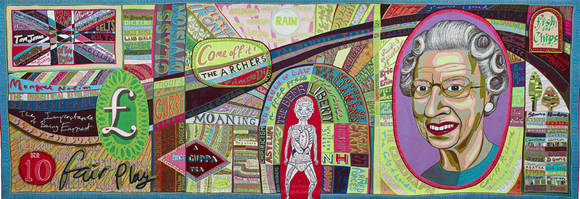 그레이슨 페리는 ‘포근한 담요’로 영국에 대한 전형적인 이미지를 제시한다. 거대한 태피스트리에 ‘영국 여왕’ ‘피시 앤 칩스’ ‘커리’ ‘좋은 차’ ‘영국의 유명 라디오 드라마 아처스’ 등 영국적 향수를 불러일으키는 상징들을 채워놓았다. 그리고 작가는 이것을 ‘당신을 포장하는 영국의 초상’이라고 묘사한다. 즉 진부하고 편견을 담은 과대 포장된 국가 이미지들을 통해 숨겨진 이면을 제대로 바라보지 못하는 현실을 지적한다.