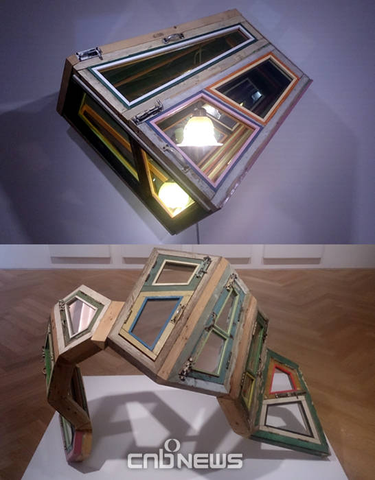 그리고 이번 전시에서 새롭게 만나볼 수 있는 작가의 신작이 있다. 전시명이기도 한 ‘무용지용(无用之用)’이다. 이 작업의 주된 소재는 오래된 창문과 거울이다. 본래 ‘쓰레기’로 칭해졌던 존재들이다. 작가는 “중국은 1999년부터 옛 건물을 부수고 새로 개발하는 과정을 거쳐 왔다. 이때 수없이 부서진 건물들에서 다양한 창틀을 발견했다. 이 창틀과 타일, 책꽂이로 쓰였던 나무 등을 붙여 작품을 만들었다”며 “일반 사람들이 무가치하다고 생각하는 것으로 가치를 창출하는 것이야말로 예술이라 생각했다. 그리고 이것이야말로 내가 생각하는 한계를 뛰어넘는 작업, 즉 무용지용(无用之用)을 실현하는 일이었다”고 말했다.