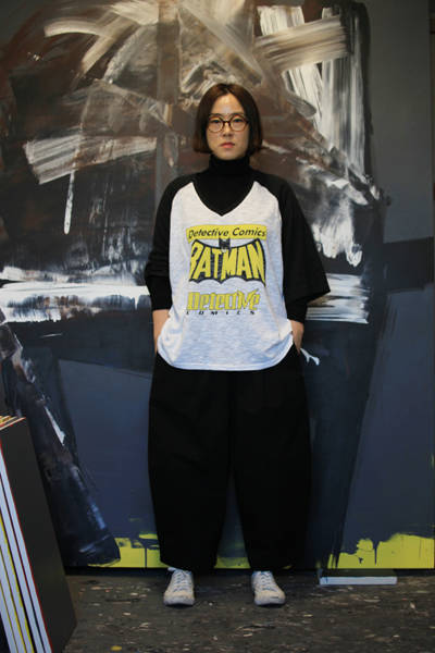 “큰 그림을 어쩔 때는 하루 만에 다 그릴 정도로 온전히 저를 쏟아 부어요. 그래서 저는 제 그림이 저를 꼭 닮은, 저를 말해주는 존재라고 느껴요. 화면에서 일어난 우연들도 모두 그대로 둬요. ‘이런 형상을 그려야지’ 의도하지 않고 마음 가는 대로 붓질을 하죠. 흘러내린 물감을 어떤 사람은 실수, 또는 오류라고 여길 수도 있겠지만 저는 제 붓질에서 파생된 모든 부수적인 것들까지 바로 제 모습이라고 생각해요. 어느 하나 버릴 게 없어요. 그래서 물감이 이리저리 튄 자국, 흘러내린 자국까지 모두 수용합니다.”