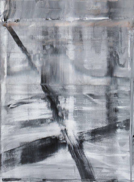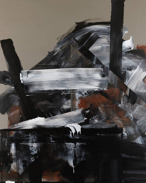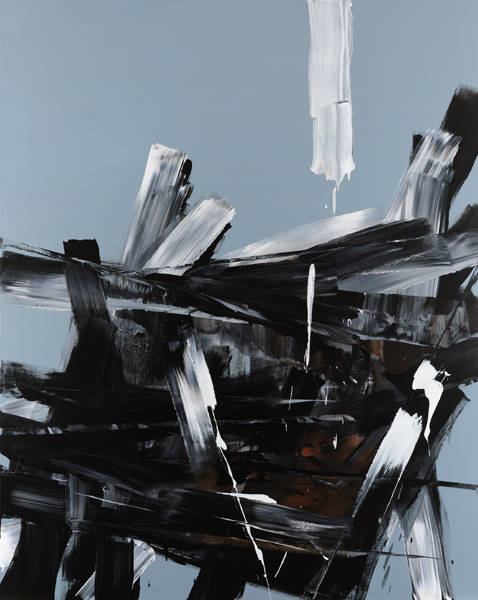 붓과 물감을 들고 캔버스 앞에 다시 선 작가는 거침없이 붓질을 시작했다. 기본색인 흰색과 검은색을 주로 사용했다. 특히 모든 캔버스를 세워놓고 작업하는 걸 고집했다. 권위적으로 화면을 지배한다는 생각을 지우기 위해서. 작가는 “내가 우위를 점하지 않고, 똑바로 서 있는 캔버스에 돌진해 내가 느끼는 감정들을 마구 풀어낸다”고 말했다. 그리고 캔버스를 세워놓으면 물감이 위에서 아래로 흘러내리는데 이것 또한 작가가 원하는 바다.