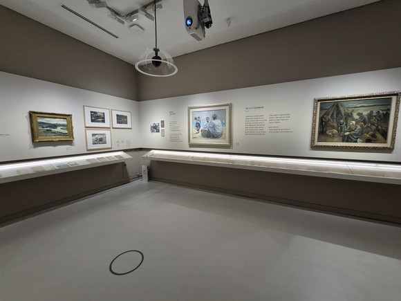 3부 ‘실향(失鄕) – 폐허의 땅’에서는 6.25전쟁으로 민족사의 비극 속 작가들이 느끼고 기록한 우리 땅의 모습을 살펴본다. 전후 폐허가 된 시가지를 그린 이종무의 <전쟁이 지나간 도시>(1950), 도상봉의 <폐허>(1953)는 암담한 현실을 쓸쓸하고도 고즈넉한 느낌으로 묘사하고 있다. 또한 신영헌의 <평양 대동교의 비극>(1958), 이수억의 <6.25동란>(1954), 남관의 <피난민>(1957)과 같은 추상‧반추상 풍경화는 어두운 색채와 거친 붓질, 형태의 해체와 분할로 전쟁의 참상, 고통의 기억을 표현해낸다. 리얼리즘적 시선에서 피폐한 현실을 생생하고 강렬하게 묘사한 이만익의 <청계천>(1964), 전화황의 <전쟁의 낙오자>(1964)는 전쟁기 피난촌을 배경으로 궁핍과 절망의 시대를 드러내고 있다.