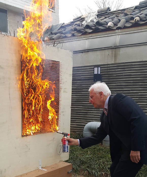 디렉터 쟝 브롤리가 불을 사용한 오베르텡의 퍼포먼스를 대신 행하고 있다.
