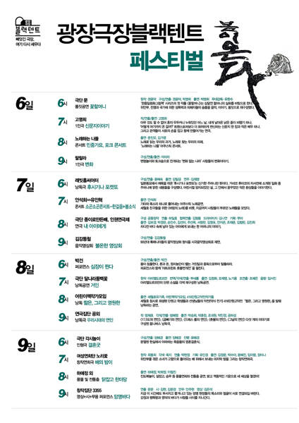 3월 6~9일 시간대별로 다양한 공연이 구성됐다.(사진=광장극장 블랙텐트)