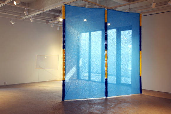신작 ‘네트 - 실점과 득점’와 ‘횡단보도’, 그리고 ‘수영장 - 수면’은 이런 풍경을 대표적으로 포착한 것들이다. 세 작품 모두 납작한 형태를 하고 있다. ‘네트 - 실점과 득점’은 평평한 형태로 전시장에 걸려 있고, ‘횡단보도’, ‘수영장 - 수면’은 마치 그림을 세워놓은 듯 평평한 형태를 띤다. 작가가 모두 본 풍경이다. 그런데 이 풍경은 전체이면서 또 일부분이다. 평면처럼 보이는 수영장의 경우 안에 들어가면 수면의 깊이를 느낄 수 있고, 횡단보도도 불룩한 보도블록 위에 자리해 있다. 전시장에는 이 풍경이 작가의 풍경으로 재해석돼 관람객들을 만난다.