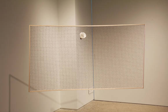 이지성, ‘네트 - 실점과 득점’. 배드민턴 네트, 셔틀콕, 95, x 55 x 5cm. 2017.