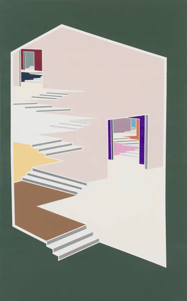 이지연 작가에게 공간은 사전적 의미의 충족 조건인 사람이나 사물의 존재 또는 활동 유무에 의해 좌우되는 부차적인 요소가 아니다. 그 자체가 작품의 토대를 이루는 핵심 주제다. ‘그림 속에 그리다’ 연작은 작가의 기억 속에 존재하는 수많은 공간들에 대한 주관적인 기억의 현시이자 일종의 오마주다. 원색의 대비로 강조된 문과 계단의 형태가 내면으로 소실되며 중첩적으로 이어지는 화면엔, 사람이나 사물의 흔적이 일체 배제돼 있다. 그리고 한 공간의 형태와 크기가 창조하는 인접한 다른 공간의 보임에 집중하도록 이끈다.