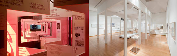 '공간변형 프로젝트-상상의 항해'(왼쪽)와 '김태수' 전시장 전경.(사진=국립현대미술관)