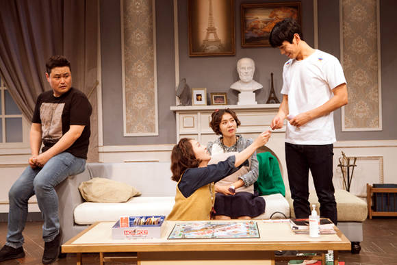 극중 인물들은 함께 모노폴리 게임을 하면서 친밀해진다. 서로를 생각하는 애정 어린 마음이 커지면서 스스로 단체치료를 해보자고 용기를 낸다.(사진=연극열전)