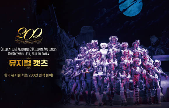 현재 지방투어 중인 뮤지컬 ‘캣츠’가 12월 16일 대구공연에서 국내 최초로 누적 관객 200만 명을 돌파한다. 지난 2007년 3월 ‘명성황후’가 100만 관객을 처음으로 돌파한 후, 약 10년 만의 기록이며, ‘캣츠’ 자체적으로는 2009년 2월 100만 돌파한 이래 8년 10개월 만의 소식이다.