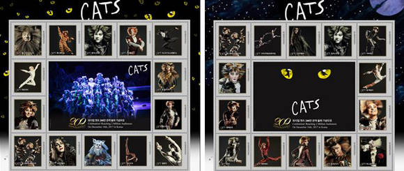 뮤지컬 '캣츠' 200만 관객 돌파 기념우표 2종.(사진=클립서비스)