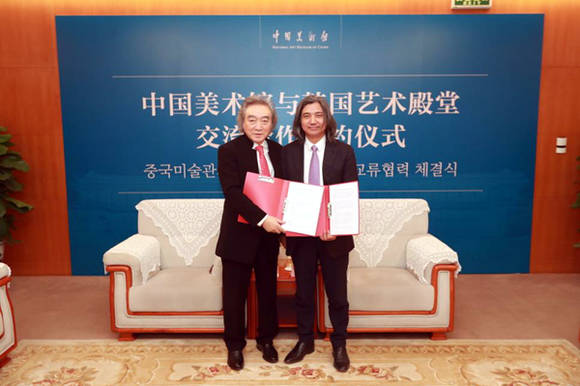 예술의전당(사장 고학찬)은 12월 26일 정오 중국 베이징 중국미술관에서 중국미술관과 상호간 전시 교류 협력에 합의하는 협력의향서(MOU)를 체결했다. 전시 교류를 통해 한중 문화 교류 확대에 기여하자는 취지를 담은 이번 협약을 통해 예술의전당은 중국미술관과 3년에 걸친 한·중 대표 작가의 전시를 함께 개최할 수 있는 토대를 마련했다.