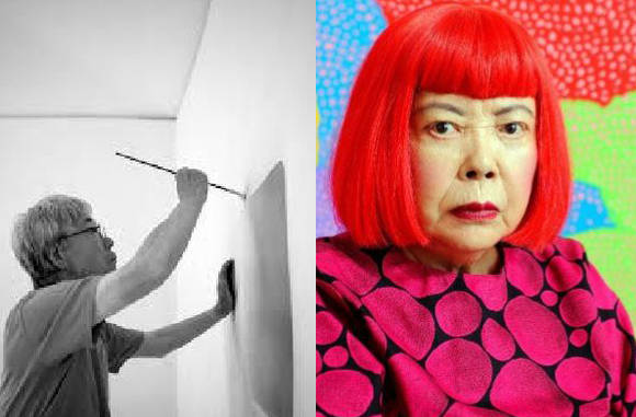 야요이 쿠사마(1929~)는 일본의 여성 아티스트로, 현재까지도 여러 분야를 넘나들며 독창적 인 창조 활동을 지속하고 있다. 쿠사마는 1957년 일본을 떠나 미국에 정착했고, 1959년 열린 개인전에서 ‘옵세셔널 모노크롬(Obsessional Monochrome)’이라는 제목으로 ‘무한망(Infinity Net)’ 시리즈를 처음 선보였다. 1960년대 뉴욕 화단에 센세이션을 일으킨 ‘무한망’은 단색조 점들로 화면을 가득 채운 그림으로, 포물선 모양의 붓질로 둥글고 조그만 여백들을 무수히 남겼다. 무한 반복의 작업은 ‘자기 소멸’을 의미하며, 내면의 고통을 예술로서 극복하고자 하는 쿠사마의 의지가 담겼다.
