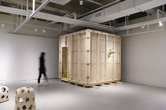 이번 전시에서 ‘세 개의 방’은 다음과 같이 구성된다. 첫째, 내부와 외부가 관계하는 하나의 공간, 흙으로 빚은 ‘상자’들의 방이다. 전시장에 도자로 제작된 상자들이 진열되는데, 상자의 작은 구멍을 통해 내부를 보거나 직접 상자로 들어가 내부를 통해 밖을 볼 수 있는 형태다. 이로써 상자를 통해 외부와 내부의 공간이 서로 상호 작용하도록 이끈다. 이번 전시의 대표작 ‘공예가의 방 혹은 건축가의 그릇’은 공예와 건축, 조각의 영역을 하나의 작품으로 빚어낸 대규모 도자 설치물이다. 작가는 흙으로 빚어진 방에 의자와 조명, 창문을 설치해 관람객이 이 공간에서 명상할 수 있도록 방을 제공한다.