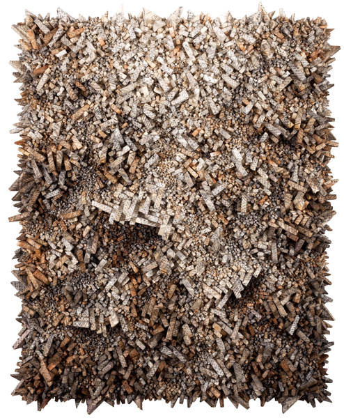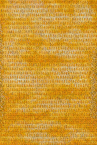 특히 ‘집합(Aggregation)’이라는 타이틀의 작품들은 한지로 섬세하게 싸고 묶은 작은 삼각 오브제들을 천연 염색 기법으로 물들인 후 촘촘하게 커다란 하나를 이루는 집합체로 형상화한 작업이다.