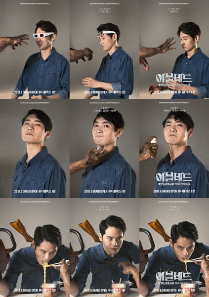 ‘누구나 애정하는 좀비가 하나쯤 있다’는 부제를 달고 온 이번 공연은 좀비라는 소재를 활용해 다소 황당하면서도 유쾌한 장면을 연출한 모션 포스터를 이블데드 공식 유튜브와 SNS에 공개했다. 3D 영화 관람을 넘어 직접 터치하는 좀비에 당황하는 강정우, 사정없이 미스트를 뿌려주는 좀비를 애써 피하려고 하는 김대현, 좀비가 먹여주는 라면을 열심히 먹는 서경수까지 좀비와의 케미를 선보이는 애쉬 역의 배우들이 눈길을 끈다. 이밖에 극 중 등장 캐릭터인 스캇, 애니, 린다, 셰럴 등도 각기 다른 콘셉트의 포스터를 선보였다.
