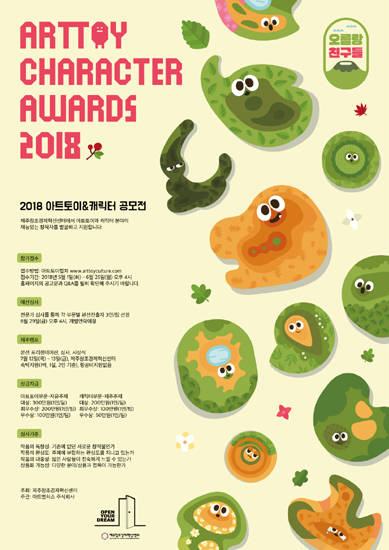 아트토이&캐릭터 공모전은 지난해까지 총 3회가 열렸다. 1회 공모전에서 700여 점의 출품작 가운데 아트토이 부문 대상을 차지한 슈퍼픽션은 LG생활건강, LG전자, 한화생명, 롯데백화점 등과 협업하는 등 활발한 활동으로 주목 받고 있다. 2회 공모전에서 아트토이 부문 대상을 수상한 ‘더스티포켓’의 서현 작가는 톡톡 튀는 캐릭터 콘텐츠로 그림책 작가로 활동 중이다. 이번 공모전 포스터는 지난 3회 공모전 캐릭터 부문 ‘제주와 오름’ 주제로 대상을 수상한 오를레히팀의 오를랑친구들 캐릭터로 제작했다.