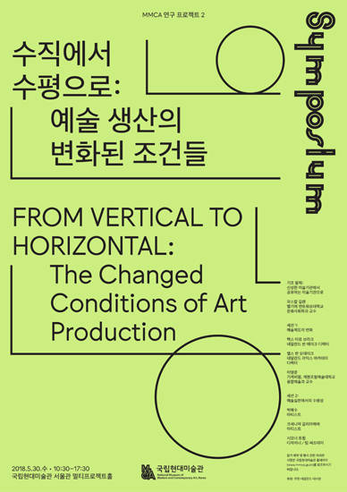국립현대미술관(관장 바르토메우 마리)은 국제 심포지엄 ‘수직에서 수평으로: 예술 생산의 변화된 조건들’을 5월 30일 서울관 멀티프로젝트홀에서 연다.