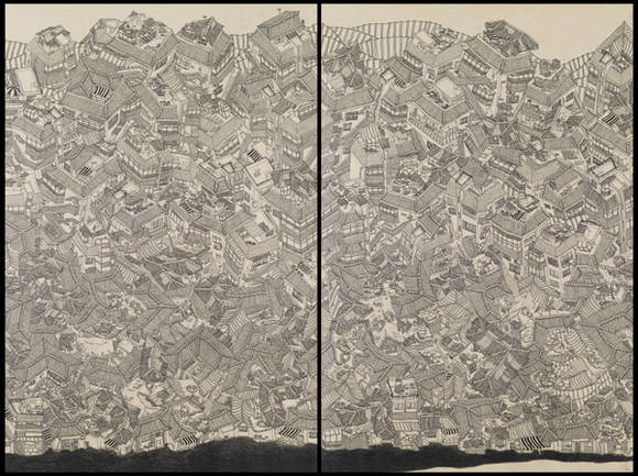 사라진 유년 시절의 기억과 맞닿아 있는 빼곡한 집들은 과거를 보여주는 동시에 현재와 연결돼 과거의 추억과 그리움을 느끼게 한다. 기억에 의존해 그려진 집들은 다양한 측면에서 직접 바라 본 그대로를 그린 것으로, 다시점(多視點)으로 표현돼 보는 이로 하여금 상상력을 자극한다. 작가가 기록하고자 하는 것은 사라진 집뿐만이 아니라 한 사람의 삶 그 자체로, 그것들을 소중히 여기는 작가의 애잔한 마음을 느낄 수 있다.