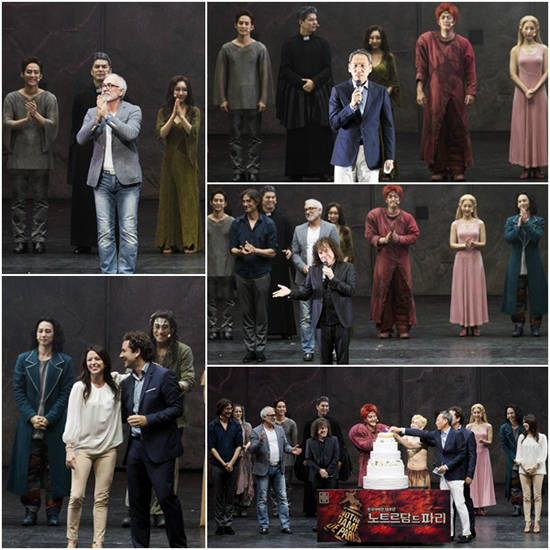 지난 8일 뮤지컬 ‘노트르담 드 파리’의 오리지널 크리에이터들과 프로듀서가 방문해 한국어 버전 10주년 기념 공연의 첫 무대를 마무리한 후 무대에 올라 소회를 전하는 자리를 가졌다. 무대에 오른 김용관 제작사 대표는 “뮤지컬 ‘노트르담 드 파리’가 10년 전 시작됐던 무대에서 공연할 수 있게 해줘 감사드린다. 특별히 공연을 준비하는 기간 내내 부상과 싸워온 댄서들에게 감사와 경의를 표한다”고 소감을 밝혔다.