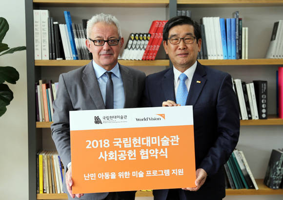 국립현대미술관(관장 바르토메우 마리)은 국제구호개발 NGO 월드비전(World Vision)과 ‘2018 국립현대미술관 사회공헌 프로그램 협약’을 11일 서울관에서 체결했다.