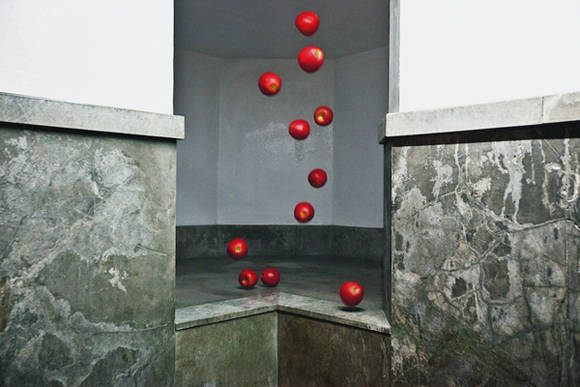 이번 전시에서 선보이는 ‘원 라이프’ 시리즈는 작가가 선택한 풍경을 배경으로 수 없이 여러 번 사과를 던져 이 사과가 떨어지는 순간을 고속 촬영해 마치 사과가 허공에 정지돼 있는 것처럼 담아낸 작품들이다. 사과가 공중에 떠 있는 순간을 우리의 눈으로 직접 볼 수는 없지만, 사과가 공중에 떠 있었던 순간은 실재했던 순간이다. 이 순간을 고속 촬영 카메라에 담아 보이지 않는 세계가 있음을 역설적으로 보여준다.