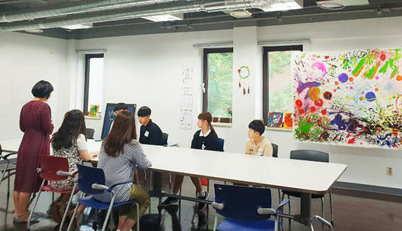 ‘예술×힐링 아지트’ 프로그램에는 청소년들이 사전신청이나 참여조건 없이 자유롭게 방문해 스스로 결정하는 예술 작업에 참여할 수 있다. 참여자는 상주 예술심리치료 전문가에게 학교와 일상에서의 고민을 터놓기도 하고, 함께 참여한 또래 친구들과 소통하며 자신의 생각을 예술 활동을 통해 평소 언어소통과는 다른 방식으로 표현할 수 있다.