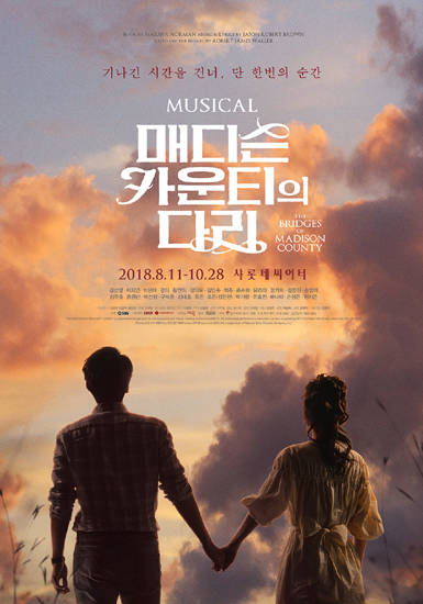 이번에 공개된 감성 포스터는 프란체스카와 로버트가 손을 잡고 해질녘 하늘을 바라보는 뒷 모습으로 이루어질 수 없어 더욱 애틋한 두 사람의 사랑을 표현했다. 특히, 감성적인 연출과 아름다운 무대 미학으로 호평받았던 뮤지컬 ‘매디슨 카운티의 다리’의 장점을 고스란히 녹인 장면 연출과 색감으로 작품 속 감동을 담았다.