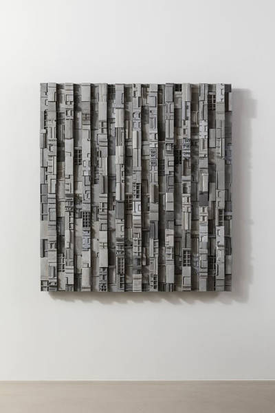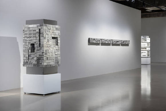 ‘다시 쌓아올리기’라는 전시 제목과 같이, 작가는 이번 전시에서 파사드의 외형적 특징을 간직한 채 최소 단위로 분할된 콘크리트 조각을 조적하는 방식으로 제작된 조각 작품을 주로 선보인다. 이런 시도는 각각의 조각의 수직적 합이 마치 현대적 건물의 모델하우스 혹은 원거리에서 관찰된 실물과 같은 시각적 효과를 불러온다.