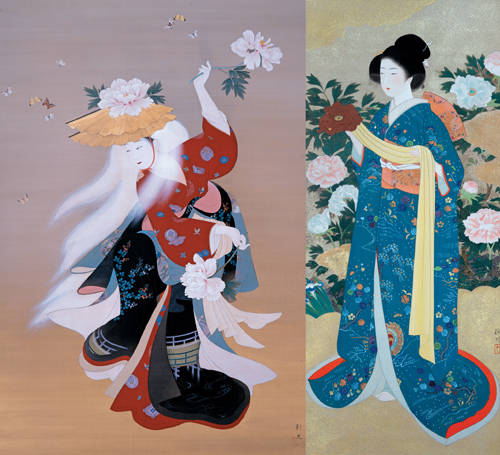 이번 정기교체에서는 일본미술에서 한 쌍으로 자주 등장하는 사자와 모란을 표현한 일본근대미술품 4점을 선보인다. 일본에서는 평화를 기원하는 사자가 모란을 배경으로 춤추는 ‘샷교(石橋)’라는 노가쿠(能樂)가 유행하면서 많은 사람들이 사자를 ‘평화를 기원하며 춤추는 상서로운 동물’로 생각했다. 이번 정기교체에서 선보이는 모란을 배경으로 사자탈을 쓰고 춤추는 여인을 그린 회화 2점과, 알마이트(Almite)와 조채칠(彫彩漆)이라는 개성적인 재료와 기법으로 사자와 모란을 표현한 공예품 2점을 통해 일본미술 속 사자와 모란의 의미를 읽어볼 수 있다.