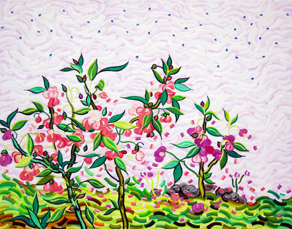 작업에 나타나는 기억 속의 풍경은 단순히 삭막한 도시 생활 속에서 막연하게 꿈꾸는 휴식의 공간이 아닌 진정한 안식처로, 제주에서의 추억을 사랑하는 작가의 마음을 엿볼 수 있다. 작가는 작가노트를 통해 “내가 만들어 내는 색의 조각들은 기억의 산물이며 향수를 자극하는 놀이와 같다. 손으로 오리고 칠하고 문지르는 노동적인 행위들은 아이러니 하게도 디지털 터치를 연상시키는 이미지를 만들어 낸다. 수많은 조각들이 모여 하나의 이미지를 만들어 내기도 하고 흩어져 사라지기도 한다”고 작업을 설명했다.