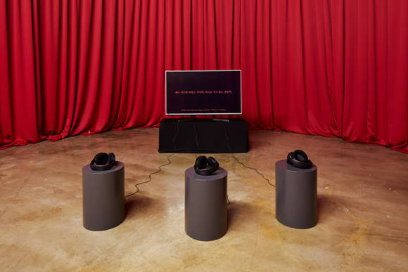 김영은의 ‘붉은 소음의 방문’은 굴곡진 한국 근현대사에서 시대에 따라 다른 용도로 기능했던 붉은 벽돌 망루에 대한 이야기를 작업의 소재로 삼는다. 작가는 1960년대 망루를 기억하는 사람들의 목소리와 대남방송이 섞여 나오는 라디오 음, 그리고 매일 밤 울려 퍼진 사이렌 소리 등을 통해 시공간을 넘나들며 서로 다른 의미를 생산하는 붉은 소음에 주목한다.