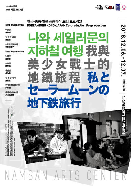 서울문화재단(대표이사 김종휘) 남산예술센터는 올해 시즌 마지막 프로그램으로 한국, 홍콩, 일본의 1980년대생 젊은 창작자들이 모여 공동제작하는 연극 ‘나와 세일러문의 지하철 여행’(크리에이티브 VaQi(한국), 극단 아토크라이트(Artocrite Theatre, 홍콩), 극단 Q(Theatre Company Q, 일본))의 제작과정이 12월 6~7일 이틀 동안 쇼케이스 형태로 공개된다.