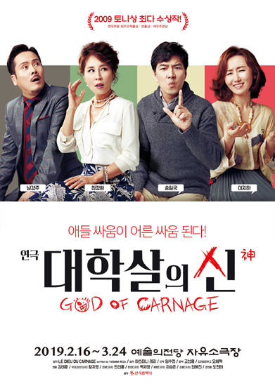 공연 제작사 신시컴퍼니 측은 “작가 야스미나레자는 ‘대학살의 신’은 결국 ‘내 안의 파괴적인 욕망’으로부터 자라나는 것이라고 메시지를 전한다. 4명의 등장인물들은 모두 중산층의 고등교육을 받은 사람들이지만, 소통의 부재로 인해 평화로운 대화는 어느 순간 싸움을 위한 싸움으로 변질돼 파국으로 치닫는다”고 밝혔다.