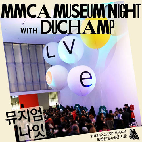 국립현대미술관(관장 바르토메우 마리)은 연말을 맞아 ‘마르셀 뒤샹’ 전시와 연계한 ‘MMCA 뮤지엄나잇 위드 뒤샹’을 국립현대미술관 서울에서 12월 22일 오후 6시에 연다.