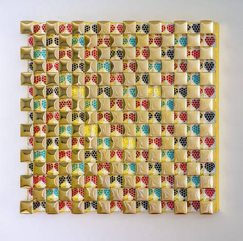 일본 유학 시절 순금 금박에 깊이 매료됐다는 작가는 금박과 자개를 작업에 수용해 큐브의 연속적인 형태를 선보이며 간결하면서도 세련된 현대적 조형성을 보여준다. 여러 겹의 금박과 큐브를 무수히 반복하여 덧붙이는 작가의 작업은 오랜 시간의 과정이 필요하다. 이는 수행과도 같다.