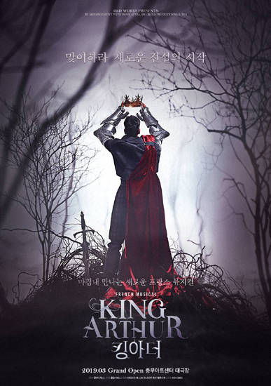 ‘아더왕의 전설’이라는 고전을 현대적으로 재해석하고 판타지적 색채를 덧입힌 뮤지컬 ‘킹아더’는 혼란스러운 시대를 잠재울 영웅을 기다리는 가운데, 우연히 바위에 박힌 엑스칼리버를 뽑은 아더가 왕으로 즉위한 후의 이야기를 그린다. 내년 3월 13일 충무아트센터 대극장에서 개막하며, 다음달 중 캐스팅 공개와 함께 첫 번째 티켓 오픈을 예정하고 있다.