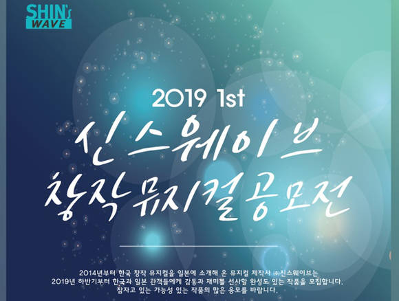글로벌 시장에 진출할 뮤지컬 창작진에게 기회가 열린다. K-뮤지컬 전문 제작사 신스웨이브(대표 신정화)가 올해 하반기부터 한국과 일본에서 선보일 수 있는 창작 뮤지컬 작품을 공모한다고 1월 22일 밝혔다.