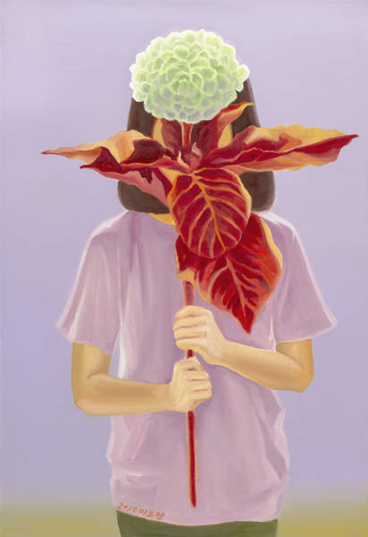 이효연은 지난해 개인전 ‘친구꽃’과 비슷한 느낌으로 이어지는 조카와 꽃 시리즈 석 점을 내 놓았다. 작가의 조카인 서윤과 동생 지연은 이미 친구꽃에서 모델로 여러 차례 등장한 바 있다. 작가는 “꽃 하면 떠올리기 쉬운 여러 고정관념들을 비켜 가려고 색감을 자유롭게 표현했으며, 수동적이거나 피동적인 이미지가 아닌 꽃을 그리려고 했다”고 작업을 설명했다. 능동적이고 자발적이며 실재와 닮았지만 다른 장미와 수국이 자유롭게 소녀와 어우러진다.