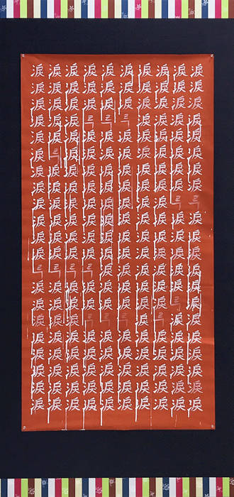 이번 전시엔 풀과 인연을 맺은 65명/팀의 작가들이 회화, 조각, 영상, 사진 등 작품 120여 점을 선보인다. 김지평의 ‘루루루루루’는 붉은 종이에 한자 ‘눈물 루(淚)’ 혹은 그것을 우리말 독음대로 쓴 ‘루’ 자를 써넣은 것으로, 초현실주의 시에서처럼 백묵 물감이 흘러내린 모양이 눈물을 연상시키는 칼리그램이자 칼리그래피다. 동양화의 재료와 기법을 이용해 전통, 아시아, 여성 등의 주제를 선입견 없이 현재의 미술 언어 안에 재맥락화하는 작업을 해온 작가의 문제의식을 보여주는 작품이다.