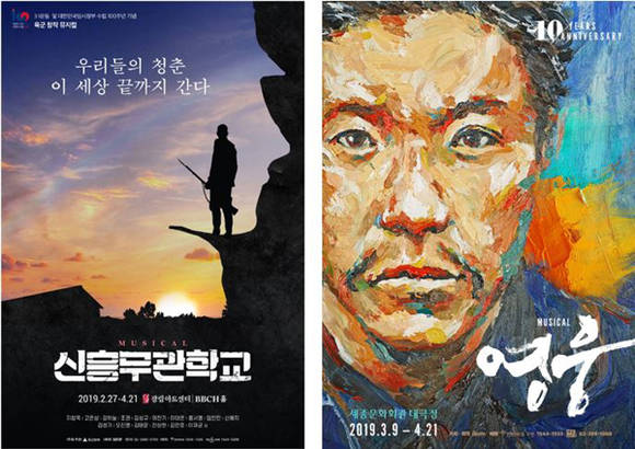 인터파크티켓에 따르면 뮤지컬 ‘영웅’ ‘신흥무관학교’ ‘윤동주, 달을 쏘다’ ‘여명의 눈동자’가 2월 3주 차 인터파크티켓 주간 랭킹에서 창작 뮤지컬 부문 상위 10위권 안에 이름을 올렸다.