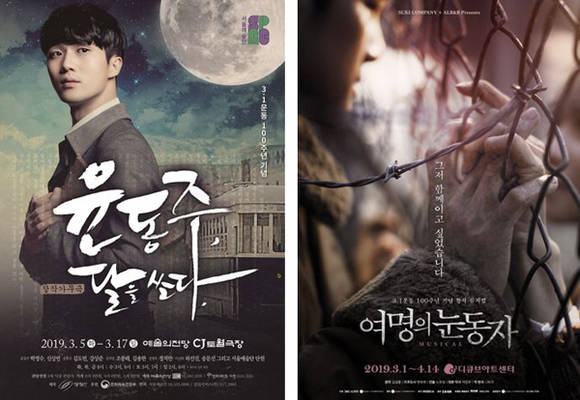 MBC 드라마 ‘여명의 눈동자’도 3.1운동 100주년을 맞아 뮤지컬 무대로 부활한다. 3.1절 당일 개막해 4월 14일까지 디큐브아트센터에서 공연된다. 뮤지컬 ‘여명의 눈동자’는 조선인 학도병 대치, 일본군 위안부 여옥, 군의관 하림의 삶을 통해 한민족의 가슴 아픈 역사를 담은 작품이다. 배우와 관객이 함께 역사의 길을 걸어가자는 의미로 무대를 런웨이 형태로 제작하고 양쪽으로 객석을 설치해 몰입감을 더할 예정이다. 인터파크티켓 측은 “전체 예매자 중 40대 이상 관객 비중이 24.6%로 일반적인 뮤지컬에 비해 높게 나타났는데, 28년 전 드라마로 접했던 애청자들의 예매가 많은 것으로 분석된다”고 밝혔다.