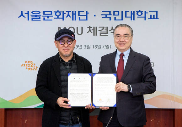 서울문화재단(대표이사 김종휘)은 국민대학교(총장 유지수)와 서울형 예술생태계를 조성하기 위한 업무협약을 3월 18일 체결했다. 주요 협약내용은 ▲예술대학 3~4학년을 위한 교육과정 신설 ▲대학 연계 청년예술가 육성 모델 개발 운영 등이다.