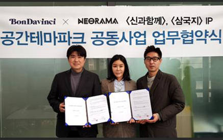 본다빈치㈜는 최근 본다빈치 뮤지엄 능동(어린이 회관 기획전시실)에서 ‘누보르망, 삼국지: 잃어버린 나를 찾아서’ 프로젝트를 오픈했다. 이와 관련한 IP를 실감형 콘텐츠와 함께 국내외 테마파크로 확장하기 위해 VR/AR회사인 (주)네오라마와 공동사업을 진행하기로 했다고 3월 20일 밝혔다. ㈜네오라마는 로봇태권브이의 VR어트렉션을 선보인 회사다.