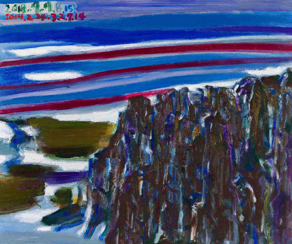 백제의 사비성이 함락될 때 3000 궁녀가 백마강으로 몸을 던졌다는 전설이 전해지는 낙화암을 그린 작품 ‘부여 낙화암’에서 하늘에 흐르는 구름과 뒤섞인 붉은보라 빛의 생생한 기운은 강물에 물든 인상적인 색조들과 어우러져 그 당시의 전율을 그대로 전해준다. 또한 한반도의 가장 남쪽 끝에 자리한 해남의 금강산이라 불리는 ‘달마산’의 갖가지 형상을 하고 있는 바위절벽과 잇닿은 하늘은 서용선 특유의 강렬한 붉은 색 노을이 푸른색과 층을 이루며 오랜 세월의 이야기를 켜켜이 품고 있다.