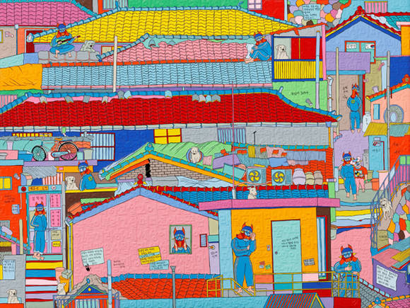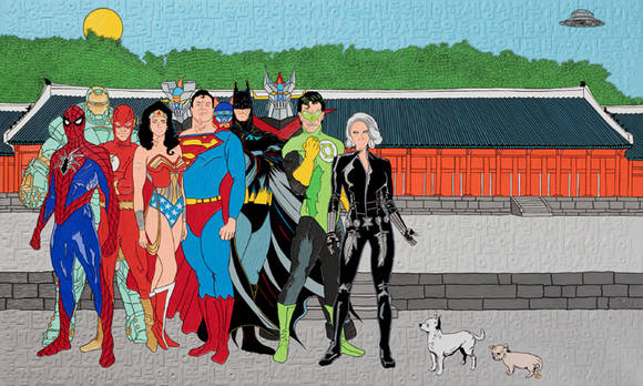 어린 시절, 우리에게는 공공연한 비밀이 하나 있었다. 여의도 국회 의사당 돔이 열리면 그 속에서 태권브이가 나와 하늘을 날며 악의 무리를 쳐부술 수 있다는 얘기. 우스갯소리지만 탄압받고 억울했던 우리 삶에 일종의 대리 만족이었을 것이다. 바로 그 태권브이가 작가 성태진에게 투영됐다. 자칫 ‘키치 문화’의 한 줄기처럼 보이지만 작가의 손을 거쳐 탄생하는 태권브이는 나름의 기백과 기상이 엿보인다. 국보 시리즈는 그 연장선에 있다.