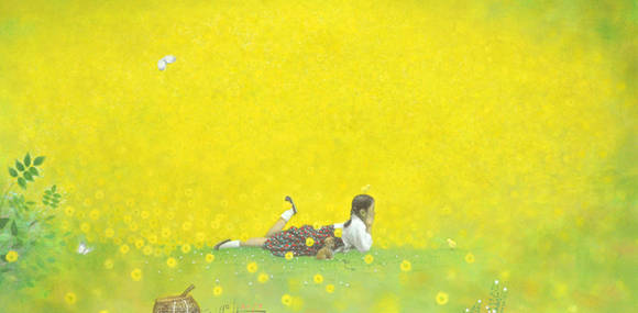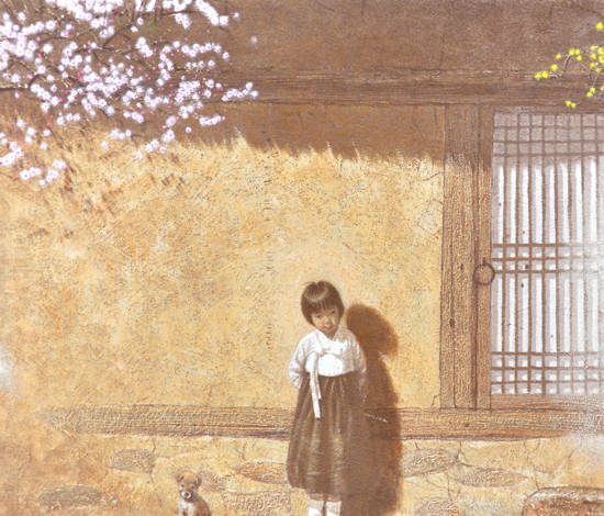 또한 ‘그리움’ 시리즈의 키포인트는 추억이라고 밝혔다. 그림 속 하얀 무명저고리를 입고 부끄러운 듯 물끄러미 앞을 바라보고 있는 소녀, 따뜻한 볕이 잘 드는 여느 집 흙 담벼락에 동네 강아지와 함께 서 있는 소녀가 있다. 젖먹이 동생을 업고 있는 누이의 귓가에 꽂힌 진달래가 처연하다. 고사리 같은 두 손을 앞으로 가지런히 모아두기도 하고, 쑥스러운 듯 뒷짐 져 가리기도 한다. 아이들의 긴소매와 진달래, 개나리로 보건대 아직은 쌀쌀한 기운이 채 가시지 않은 이른 초봄이다.