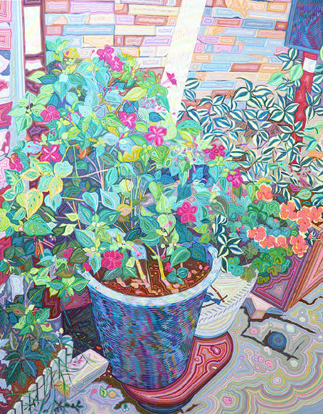 작가의 작품은 아크릴을 이용한 평면 회화다. 수백 개, 수천 개의 선들이 모여 하나의 이미지를 만들어내고 마치 이미지가 움직이는 듯 생동감을 전한다. 단어가 문장이 되고, 문장이 일렬의 선으로 텍스트의 구조를 이루며, 가느다란 붓으로 그려진 선들은 작가의 시각적 인상들을 옮기는 중요한 수단이 된다.
